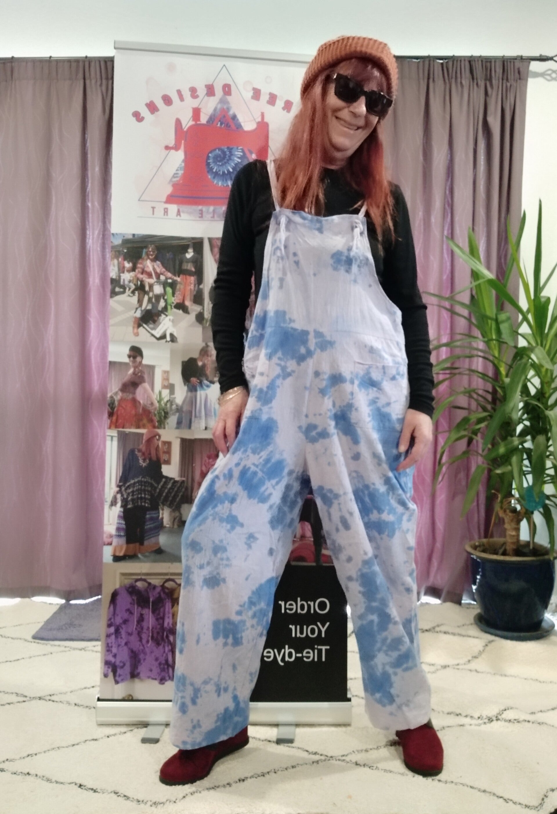 I import these dungaree's then work my magic when I tie dye them