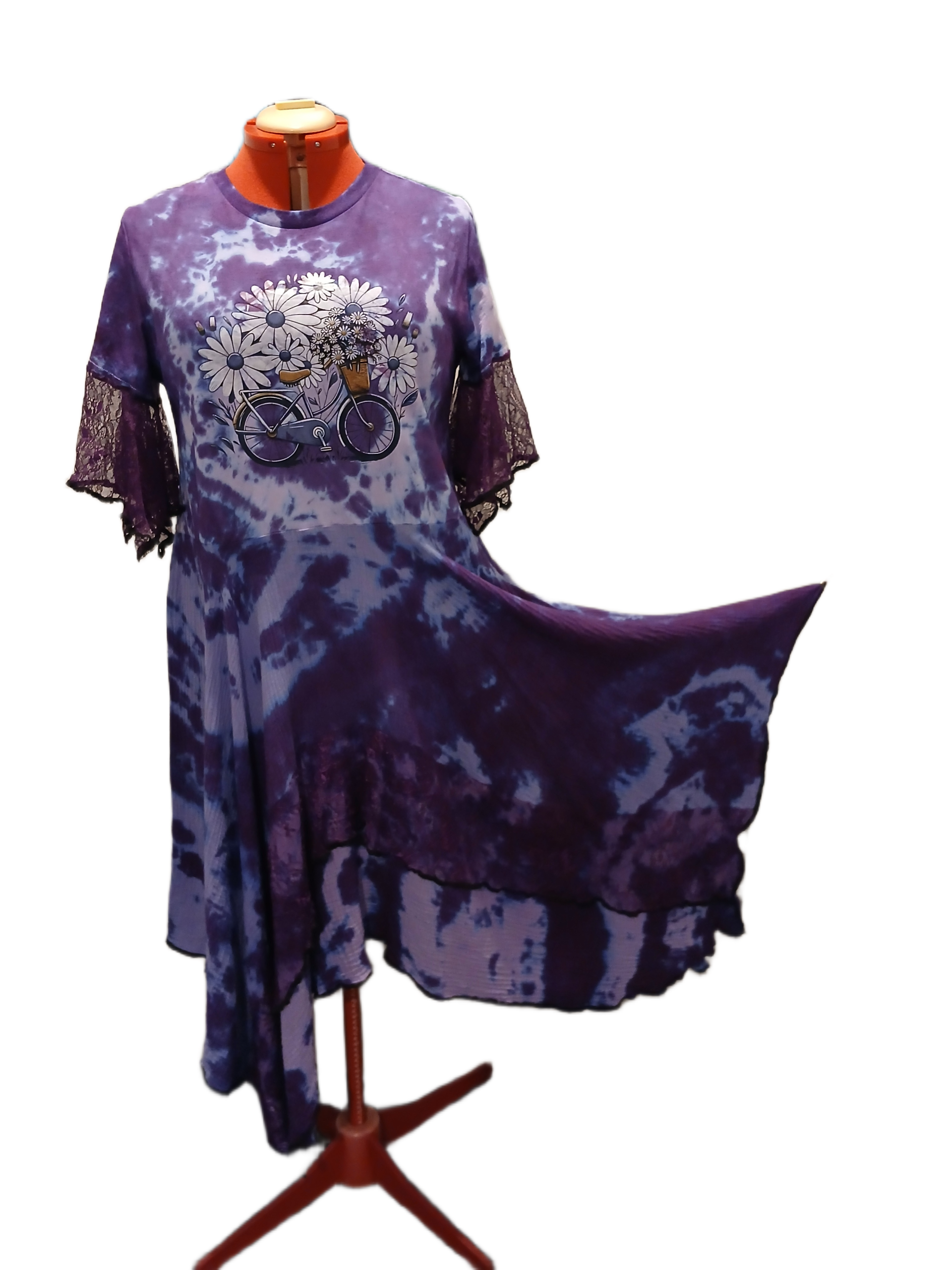 Cotton Tee with bike print joined to flowing muslin hanky.