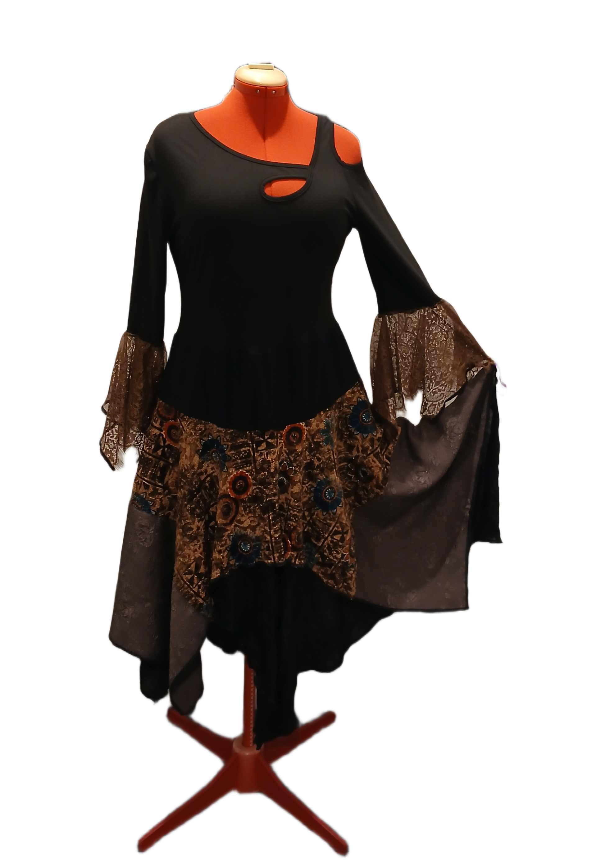 Beautiful polyester black fancy cotton top with lace hanky finished sleeves.