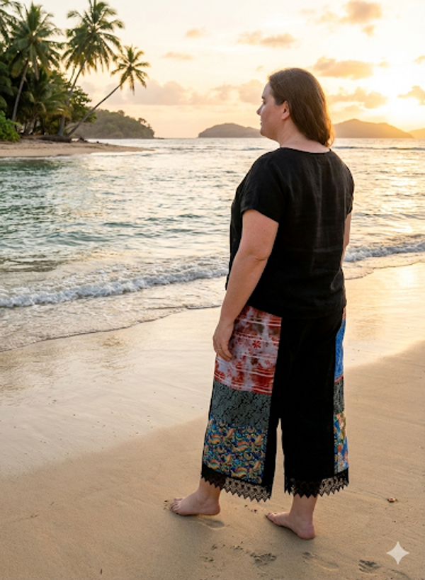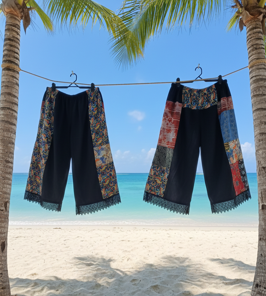 Mixture Batik, stretch velvet, black embossed fabrics.