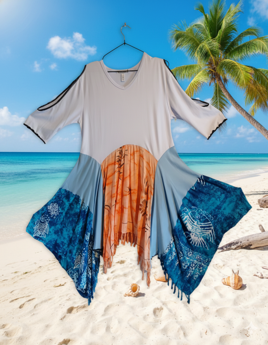 I have joined a polyester fancy tee to flowing panels of cotton .
